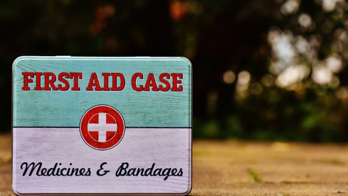 first aid case with medicine and bandages