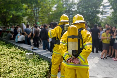 Firefighters waiting outside with evacuees